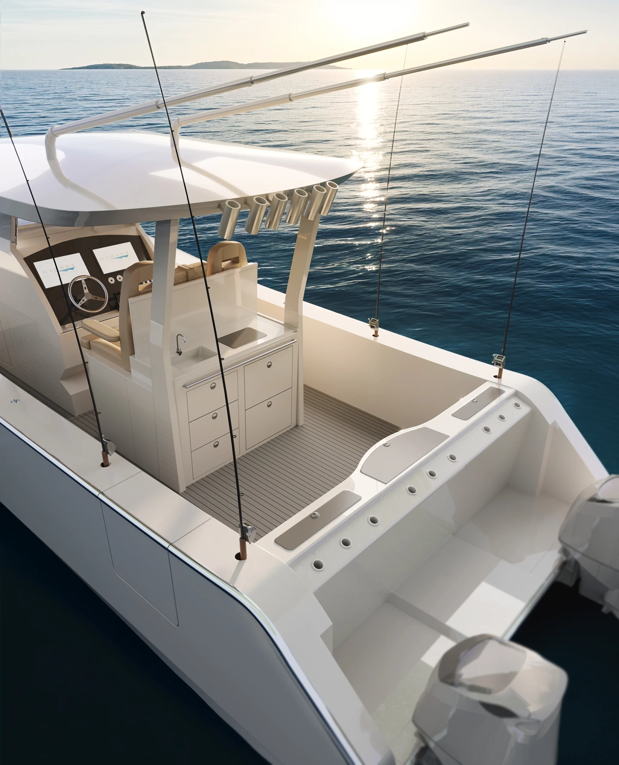 Especialista na construção de catamarãs voltados para pesca esportiva, a 350CC oferece praticidade ao pescador: está equipada com bombas d’água, agulheiros e compartimentos específicos que ampliam sua área de atuação. O acabamento superior e a atenção a cada detalhe transformam os momentos de pesca em experiências confortáveis e produtivas, atendendo exigentes padrões de quem leva o esporte a sério.